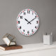 A nice simple analogue style clock face, attractive bold numerals with the minutes marked with black spots and the hours in slightly larger red spots.
