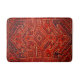 Anatolian rug look - geometric tribal pattern in warm colours . Traditional rug design with latch -hooks and diamond shape in the centre field . It is typical in the area of Bergama , Turkey .