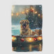 Set sail into the magic of the holiday season with this beautifully detailed illustration, showcasing a proud dog sitting in a festively decorated boat, gliding across a serene Christmas lake. The twinkling lights from nearby pine trees reflect off the water, casting a warm, festive glow that enhances the cosy ambiance. Ornaments dangle from the boat's sides, while glowing lanterns light the way, creating a scene that captures the true essence of Christmas warmth and joy. This nostalgic artwork brings a touch of holiday magic to any space, perfect for those who cherish the spirit of the season.