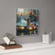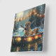 Set sail into the magic of the holiday season with this beautifully detailed illustration, showcasing a proud dog sitting in a festively decorated boat, gliding across a serene Christmas lake. The twinkling lights from nearby pine trees reflect off the water, casting a warm, festive glow that enhances the cosy ambiance. Ornaments dangle from the boat's sides, while glowing lanterns light the way, creating a scene that captures the true essence of Christmas warmth and joy. This nostalgic artwork brings a touch of holiday magic to any space, perfect for those who cherish the spirit of the season.