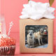 Capture the magic of a winter wonderland with this enchanting Christmas design. Featuring a wooden cart nestled in a snowy scene, this decoration brings holiday charm to any setting. Embrace the spirit of the season with this delightful addition to your decor.