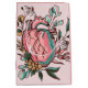 This colourful gift bag features a watercolor painting of a anatomical heart in pink and aqua blue surrounded by botanical plants on a light pink background.