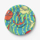 Ocean life paper plates with bubbles, anchor and fishes. Children party plates.