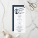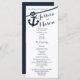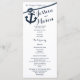 Anchor and rope nautical design printed rack card wedding programs in dark navy blue text.