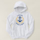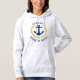 A custom designed nautical boat anchor, gold style laurel leaves and a gold star with Captain rank or other title and your personalised name or boat name on a woman's pull-over hoodie sweatshirt. Several colours to chose from. Makes a great gift.