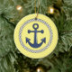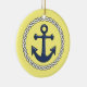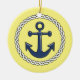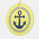 Nautically themed creramic hanging holiday ornament has an encircled anchor on the front, and aplace for y ou to entr the year on the back.
