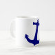 White coffee mug with blue anchor for all those who love to cruise or sail.