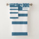 Anchor Nautical Coastal Blue White Stripes Name Bath Towel Set