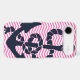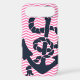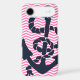 Preppy Hot Pink & Navy Chevron Print Nautical Anchor IPhone Case.