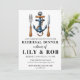Set sail for a memorable rehearsal dinner with our nautical rehearsal dinner invitations! These charming invites feature a classic navy background accented with a rustic rope border. The text is printed in a crisp navy and white colour scheme, creating a timeless elegance that perfectly complements your coastal celebration. These invitations are perfect for setting the tone for a fun and festive evening with your closest family and friends.
