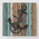 Anchor On Antique Weathered Wooden Planks Pattern Square Wall Clock