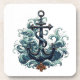 Hard plastic coaster is shown in a maritime anchor print.