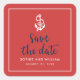 Stylish Nautical Save the Date sticker featuring an anchor and the words "save the date" in a stylish blue script against a red background with a white border. Use it to seal your envelopes. Check out other wedding items here https://www.zazzle.com/rosewoodandcitrus/gifts?cg=196540141241316965&rf=238364477188679314