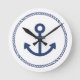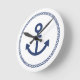 A navy blue anchor with a rope around the clock face for the nautical themed beach house, boat or office
