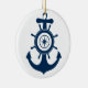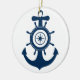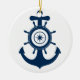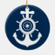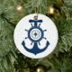 Customisable ornament with nautical theme illustration featuring a blue anchor, steering wheel and compass logo on white.