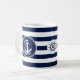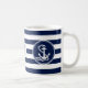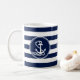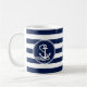 beautiful anchor and ship's wheel symbol, blue and white stripes - nautical style mug