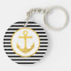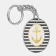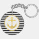 Custom double-sided round keychain with black stripes and gold anchor nautical theme.