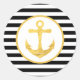 Custom stickers featuring black stripes and gold anchor nautical theme.