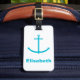 Do you like nautical theme luggage tags? This luggage tag has a turquoise blue anchor and text you can personalise.