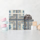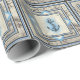 A vintage nautical pattern of a charcoal grey anchor set against a beige background edged with a pale blue and grey border. The anchor has a splash of blue across it and is framed by a square old fashioned map