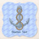 Anchor with rope illustration over waves light blue seamless background. Custom text.