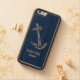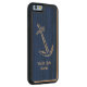Personalised nautical blue wooden iPhone 6 case featuring an engraved image of an anchor with the yacht club name which can be customised with your own name or the name of a person who loves boating, builds boats or loves sailing.