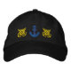 Super embroidered sailing theme hat with blue and gold anchors for the boating enthusiasts.