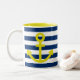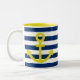 Navy and white stripes with the short yellow anchor for the nautical in you.