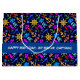 A seamless pattern of colourful silhouettes of anchors, helms, tall ships, sharks, fishes, brave pirates. Dark blue navy colour background. Ocean or treasure island adventures begin. Funny and positive gift bag for anyone. You can change or delete the template text on both sides at once. To change the colour, location, size, etc. of the text, font, and the blue stripe, please, click the "Personalise" or the "Edit Design" (as the case may be) button of the blue colour to the right of the product image. Just be creative and be happy!