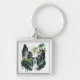 A beautiful premium square keychain showing an ink illustration of a landscape with ancient Chinese architecture and majestic waterfalls.