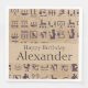 A sample Happy Birthday message and name are printed across the centre over a matching sandy beige.
