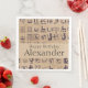 This custom party napkin features an ancient Egyptian art theme. A series of Egyptian hieroglyphics are printed across a parchment paper style background.