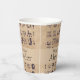 These custom party cups feature an ancient Egyptian art theme. A series of Egyptian hieroglyphics are printed across a parchment paper style background.