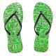A pair of green flip flops with ancient hieroglyphs engraved on stone. Feel free to customise the strap colour!