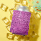 A purple can cooler with ancient hieroglyphs engraved on stone. Great as a utensil holder too!