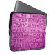 A Laptop Sleeve with ancient hieroglyphs engraved on stone in purple.