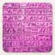 A set of square paper coasters of ancient hieroglyphs engraved on stone in purple. Great for archaeology, Egyptian themed, and costume parties.