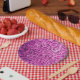 A set of purple paper plates with ancient hieroglyphs engraved on stone. Make a set with matching paper napkins, paper napkin bands, paper cups, and tearaway placemats! Also availabe in other colours: blue, green, red, and yellow. Great for halloween parties.