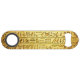 A yellow bottle opener with ancient hieroglyphs engraved on stone.