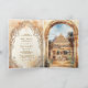 Amaze your guests with this elegant Egyptian theme wedding invite featuring beautiful rustic arches and old middle eastern architecture with modern typography.
