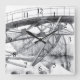 Pencil drawing.Artist by Zolotareva. Black White Modern trendy Pattern. There's a beautiful bridge over the pond.