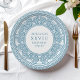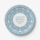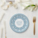 Elegant party plates for Greek or Roman Toga themed party featuring minimalist Greek meander pattern in blue. Customisable product for a memorable celebration. Perfect for your Ancient Greece or Ancient Rome-themed weddings, engagements, graduation parties, anniversaries, save the dates, bachelorette and birthday parties.