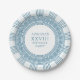 Elegant party plates for Greek or Roman Toga themed party featuring minimalist Greek meander pattern in blue. Customisable product for a memorable celebration. Perfect for your Ancient Greece or Ancient Rome-themed weddings, engagements, graduation parties, anniversaries, save the dates, bachelorette and birthday parties.