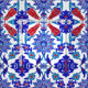 Beautiful Ancient Handmade Blue Turkish Floral Tiles Pattern Eastern Oriental Accent Fabric. Turkish Tile Colour Scheme: blue, turquoise, rusty orange red and white. Perfect for quilts, home décor accents, craft projects and apparel. Customise the tile pattern and size if desired.
