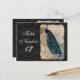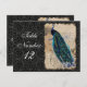 NOTE: This is a flat printed design, there is no actual 3D elements to this artwork. Everything is graphically created to look very real however. PAPER SELECTION: These are printed on 120 lb. Glossy one side, matte on the reverse postcard paper. COLOR PALETTE: black, aqua blue, cream, cream, tan, brown. DESIGN: This is a matching Reception Table Numbers (or names) Card. You will need to order these one at a time, changing the table number or name each time and putting it in your shopping cart. This design consists of a stately peacock on a tree branch vintage art element layered over etchings, swirls, antique handwriting, hand painted parchment and vintage love birds. All of this is layered over a tea stained, antiqued parchment like background. The teastained background has a very old and elegant look to it. This design has the appearance of a hand torn and curled edge layered over a hand designed damask type swirl background. The background colour can be changed to match your wedding.