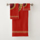 Display the style of a Roman patrician with this elegant bathroom towel set featuring Etruscan decorative motives with a red background, very popular during the Roman Empire. Customize the monogram with any initials you like.