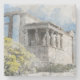 Ancient Sites Acropolis in Athens, Greece. Watercolor splash with hand drawn sketch illustration