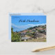 This postcard features the Ancient Theatre of Ohrid, Ohrid, North Macedonia. According to Wikipedia, it was "(built c. 200 BCE) — in Ohrid, North Macedonia. It is the only Hellenistic theater in all North Macedonia. During the Hellenistic period comedies, tragedies and dramas were performed. The Romans added gladiator and animal fights. In the three upper rows of seats there are inscriptions of names of persons that probably served as seat reservations during performances. In total, twelve rows of seats in the cavea remain." Photo credit: Sharon Hahn Darlin, 2022.