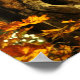 This fine art photography poster displays an ancient brown and black maple tree trunk surrounded by brilliant autumn foliage in yellow, red, orange and green. The old knots and bark form an interesting abstract pattern.