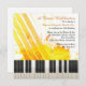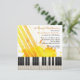 A trendy invitation featuring a piano keyboard with the spice of grunge abstract foliage, circles and yellow-rust colour. Suitable for either gender.